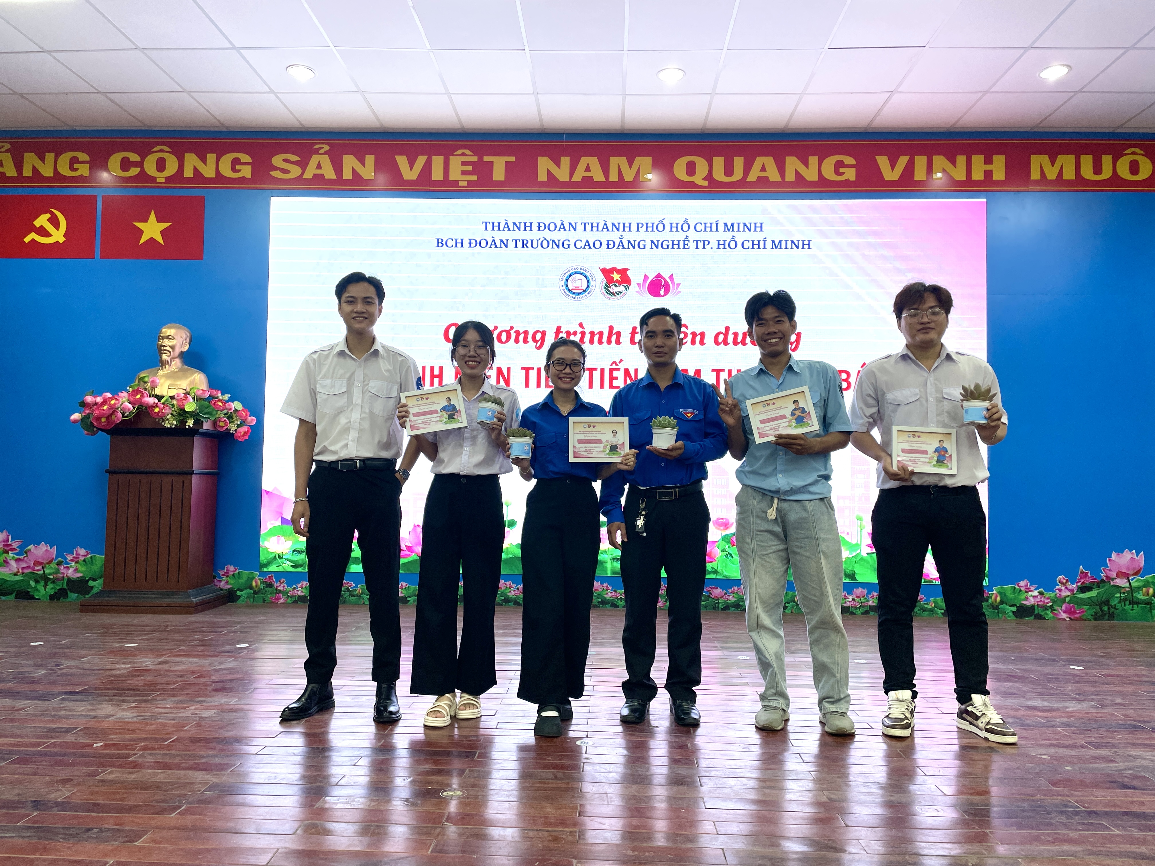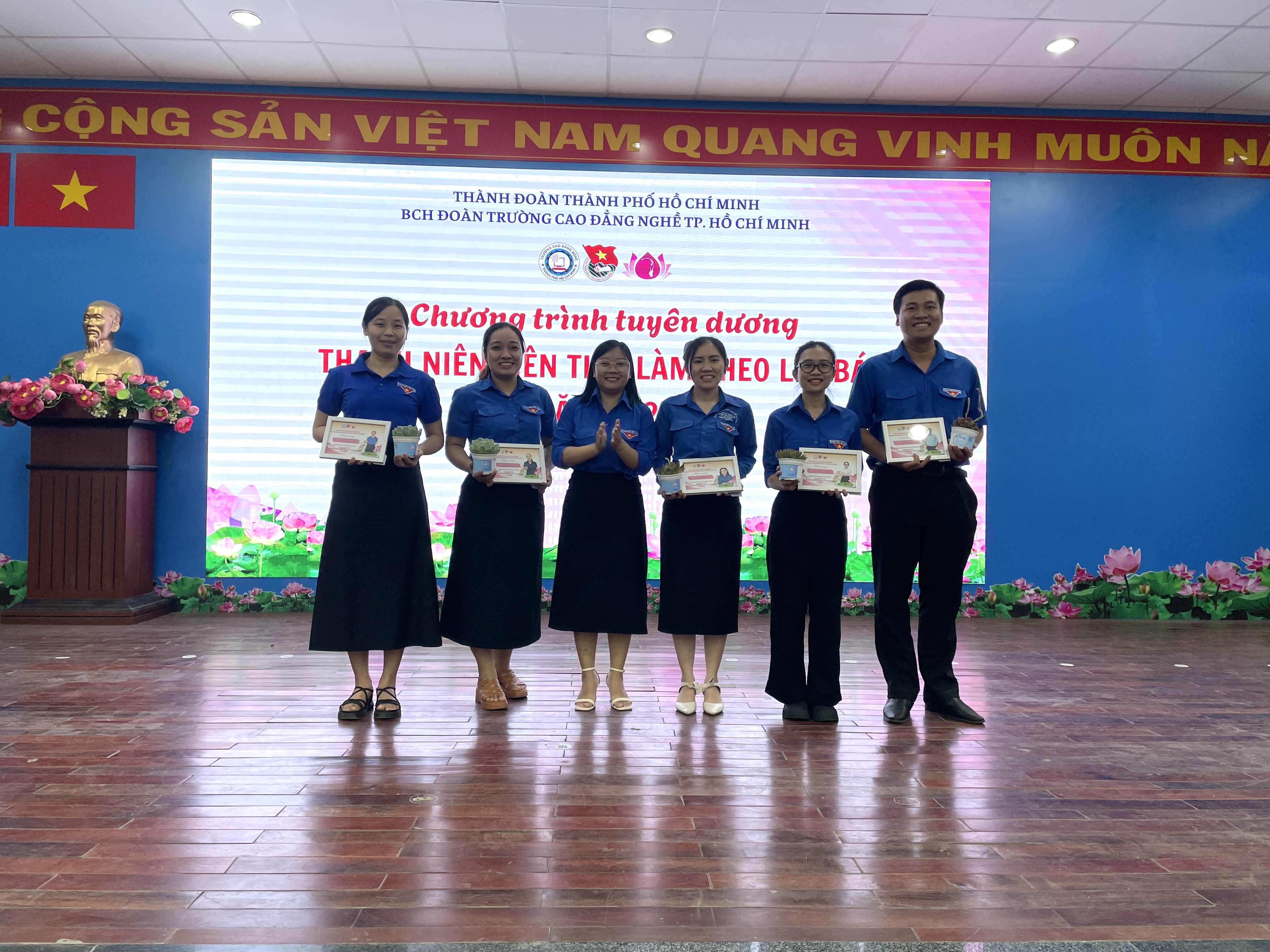 Xin chúc mừng các đoàn viên, hội viên, học sinh sinh viên được tuyên dương hôm nay – những bông hoa tươi đẹp trong vườn hoa tuổi trẻ làm theo lời Bác tại Cao đẳng nghề Thành phố Hồ Chí Minh.