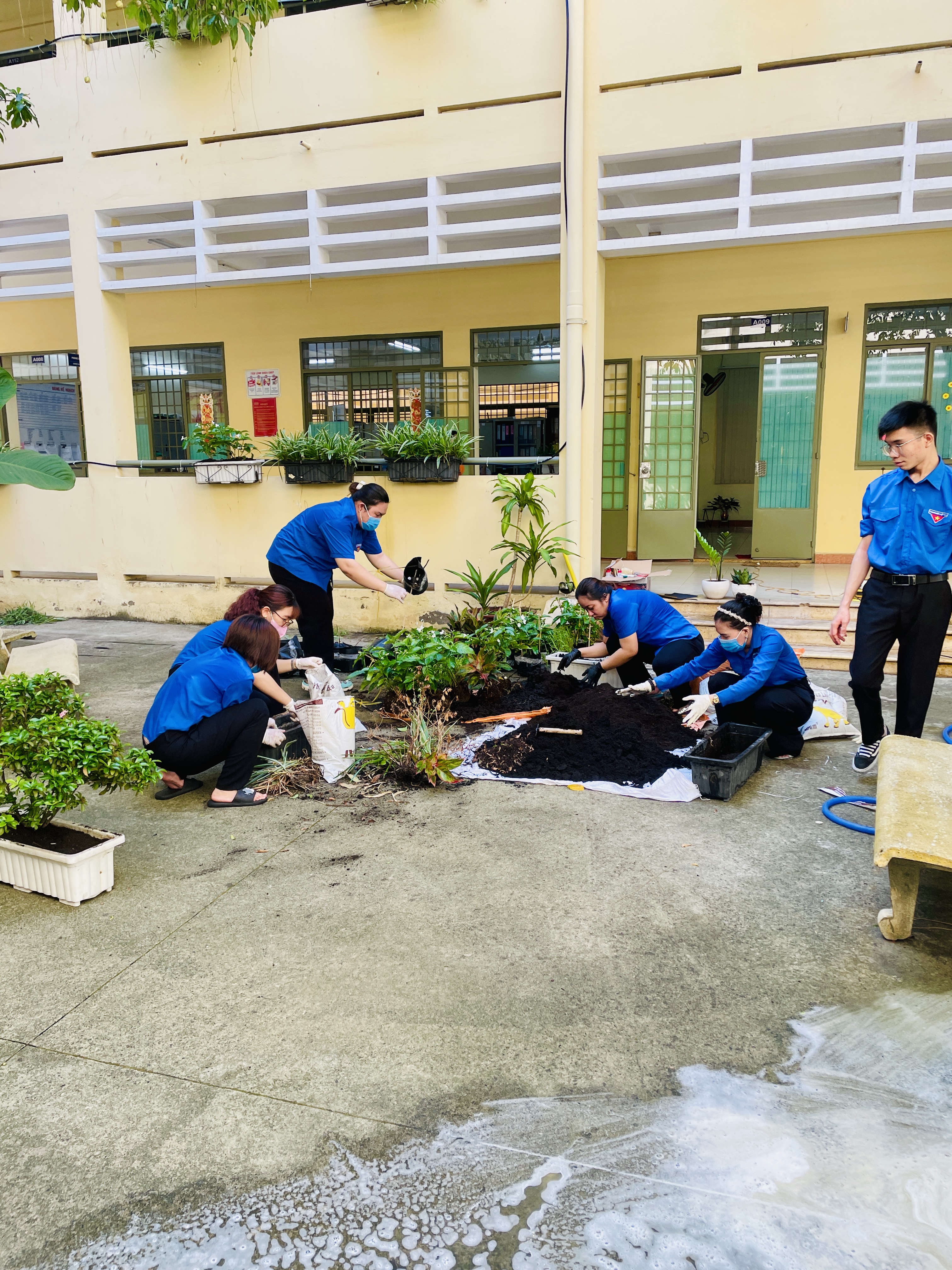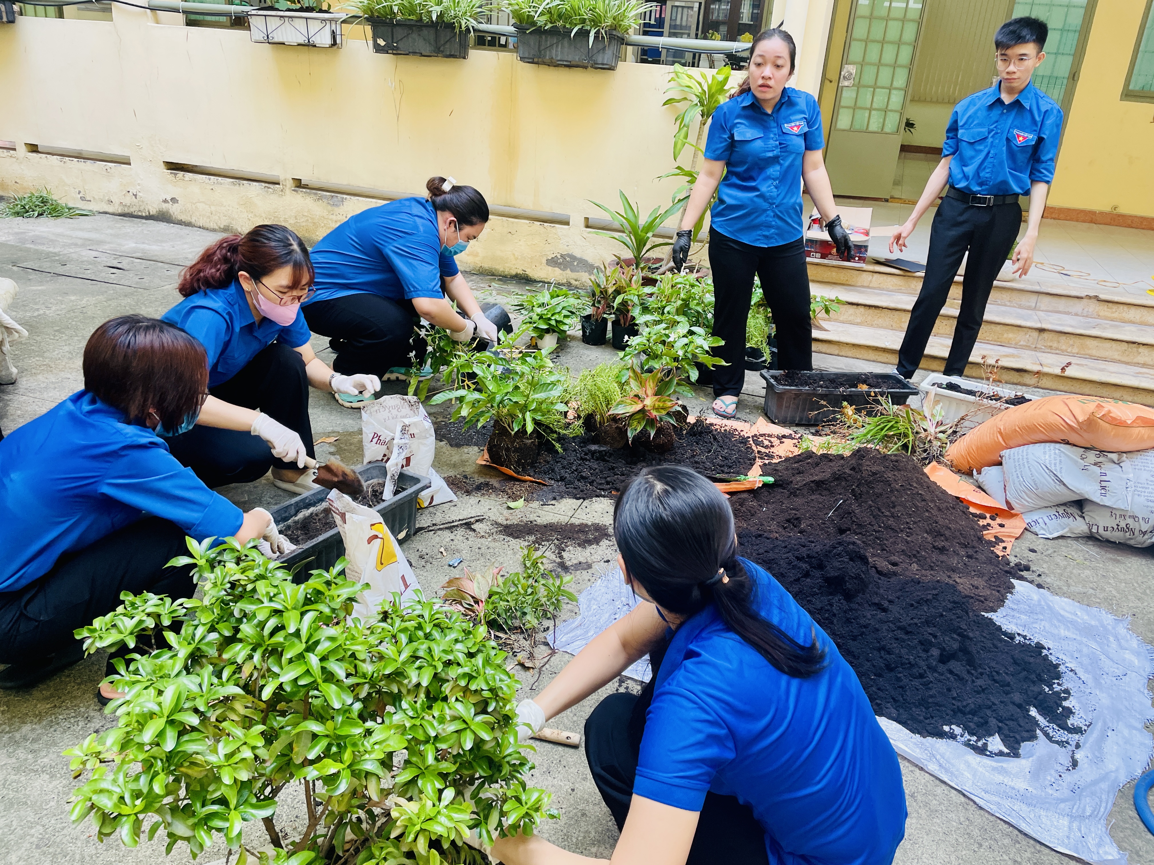 💧 Với tinh thần “Mỗi cây xanh – Một hành động đẹp”, các bạn đoàn viên, hội viên đã tích cực trồng và chăm sóc nhiều loại cây xanh. Những hàng cây non đang dần làm cho sân trường thêm xanh tươi, mát mẻ và đầy sức sống.