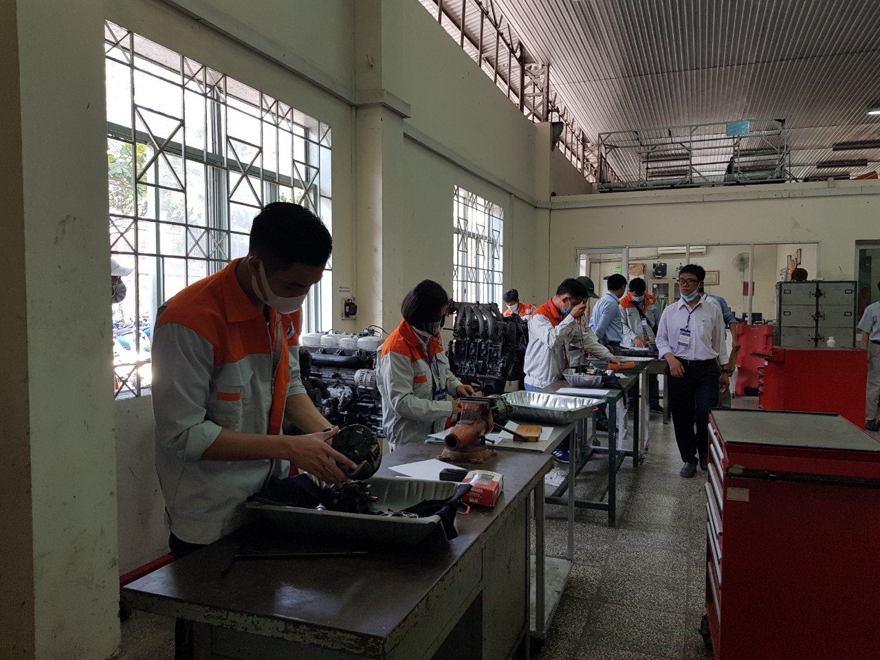 Hình ảnh gần 40 người lao động tham gia đánh giá cấp chứng chỉ Kỹ năng nghề Công nghệ ô tô, kỳ I năm 2021.