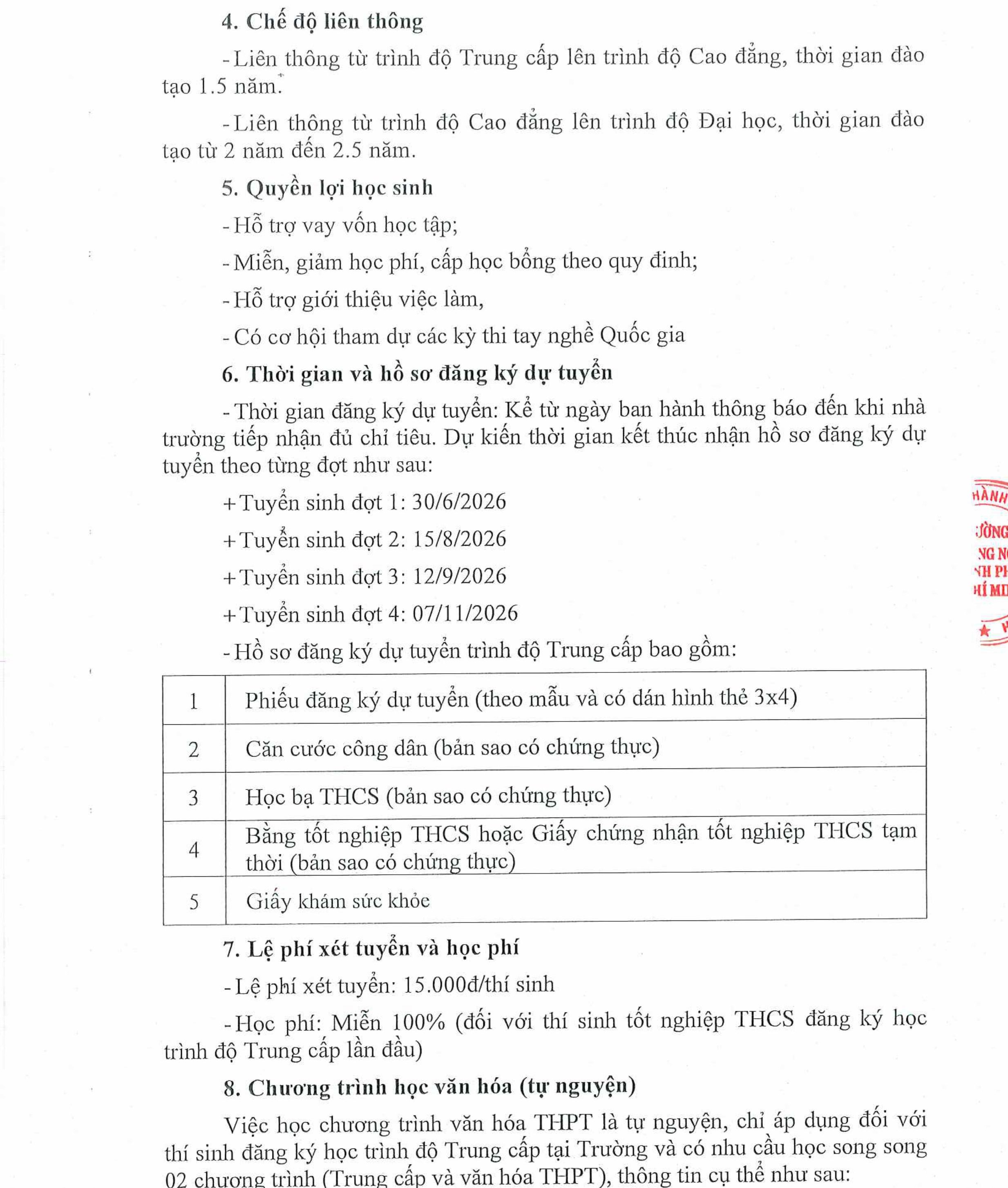 Thông báo tuyển sinh Trung cấp chính quy năm học 2026-2027