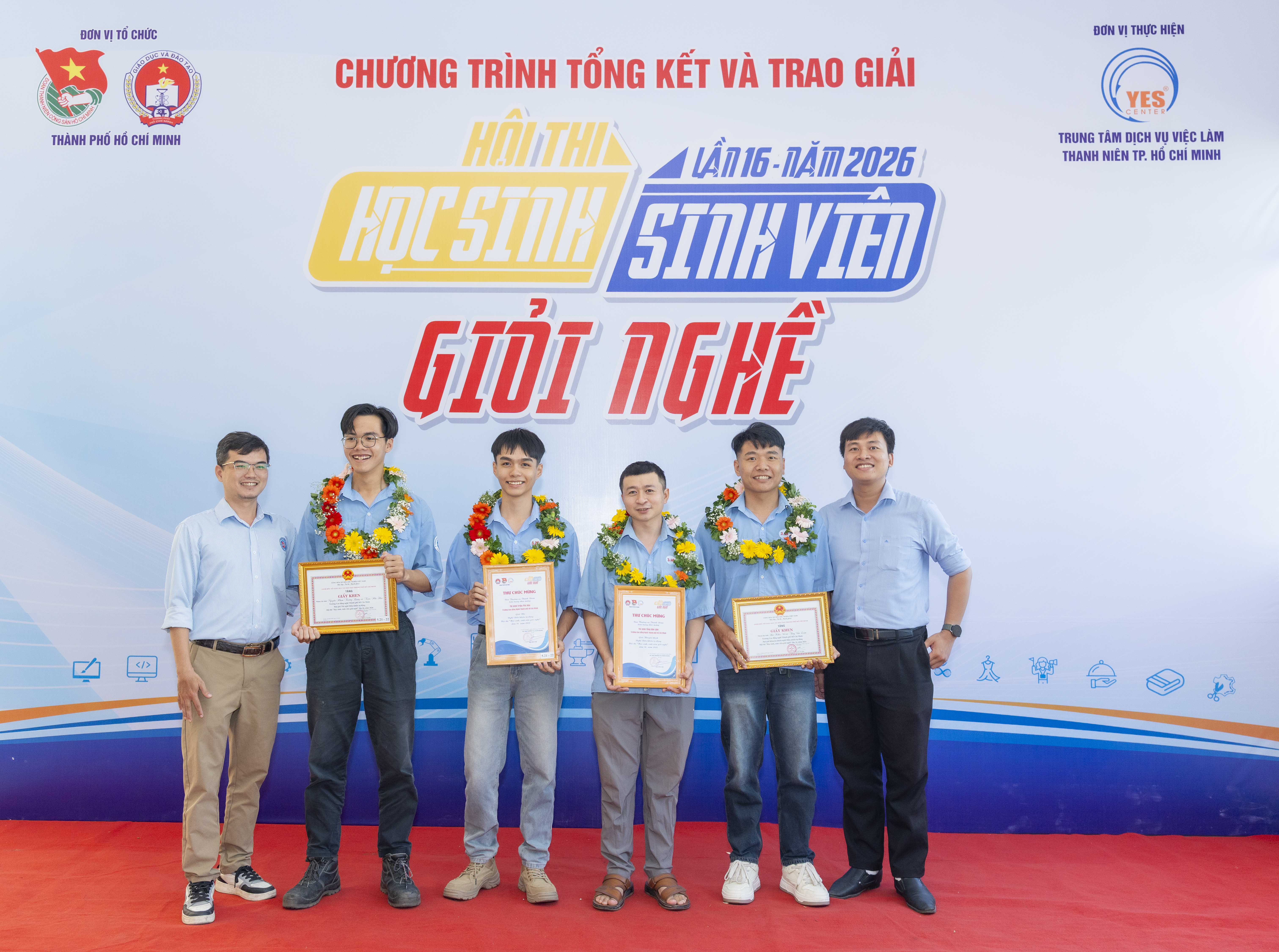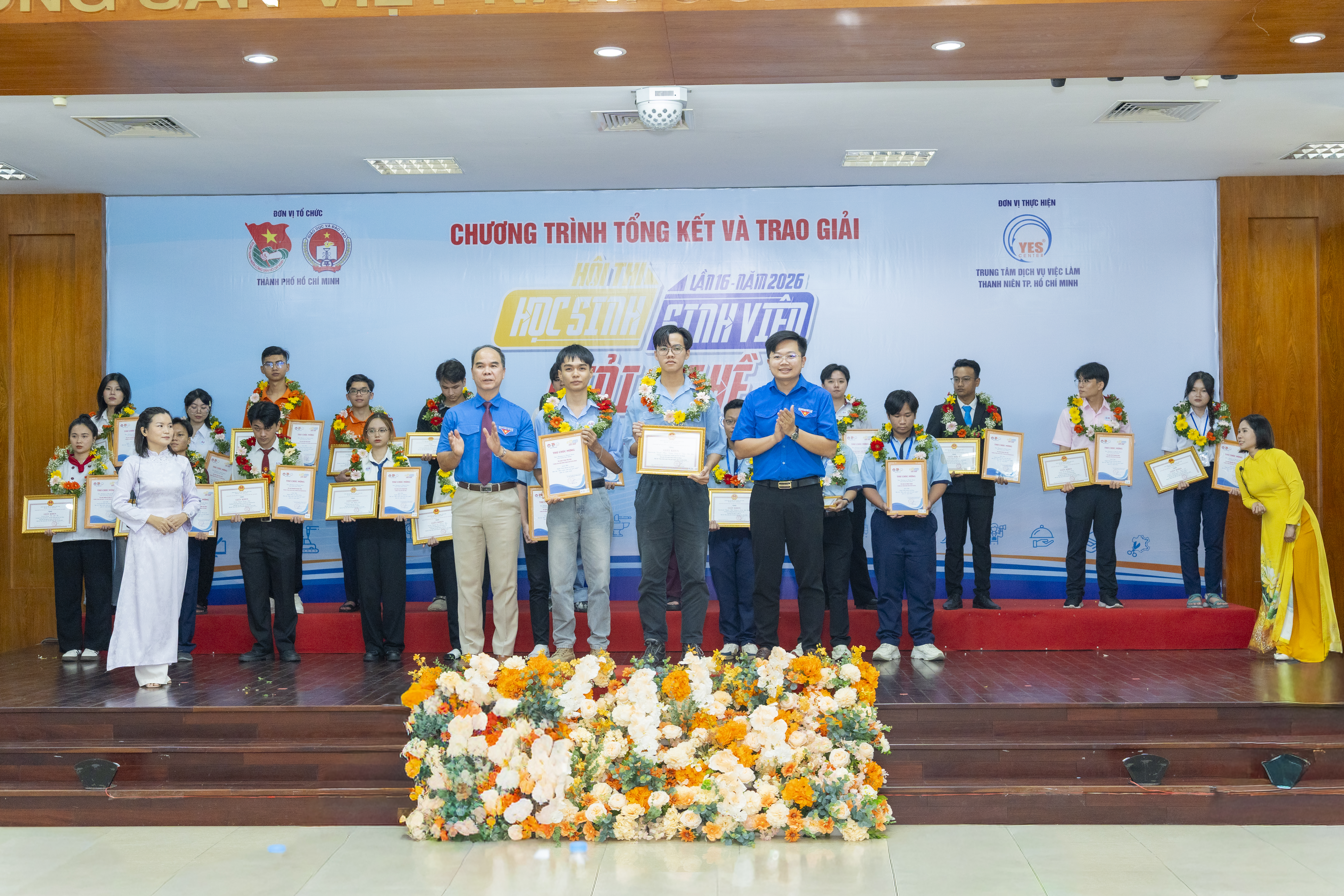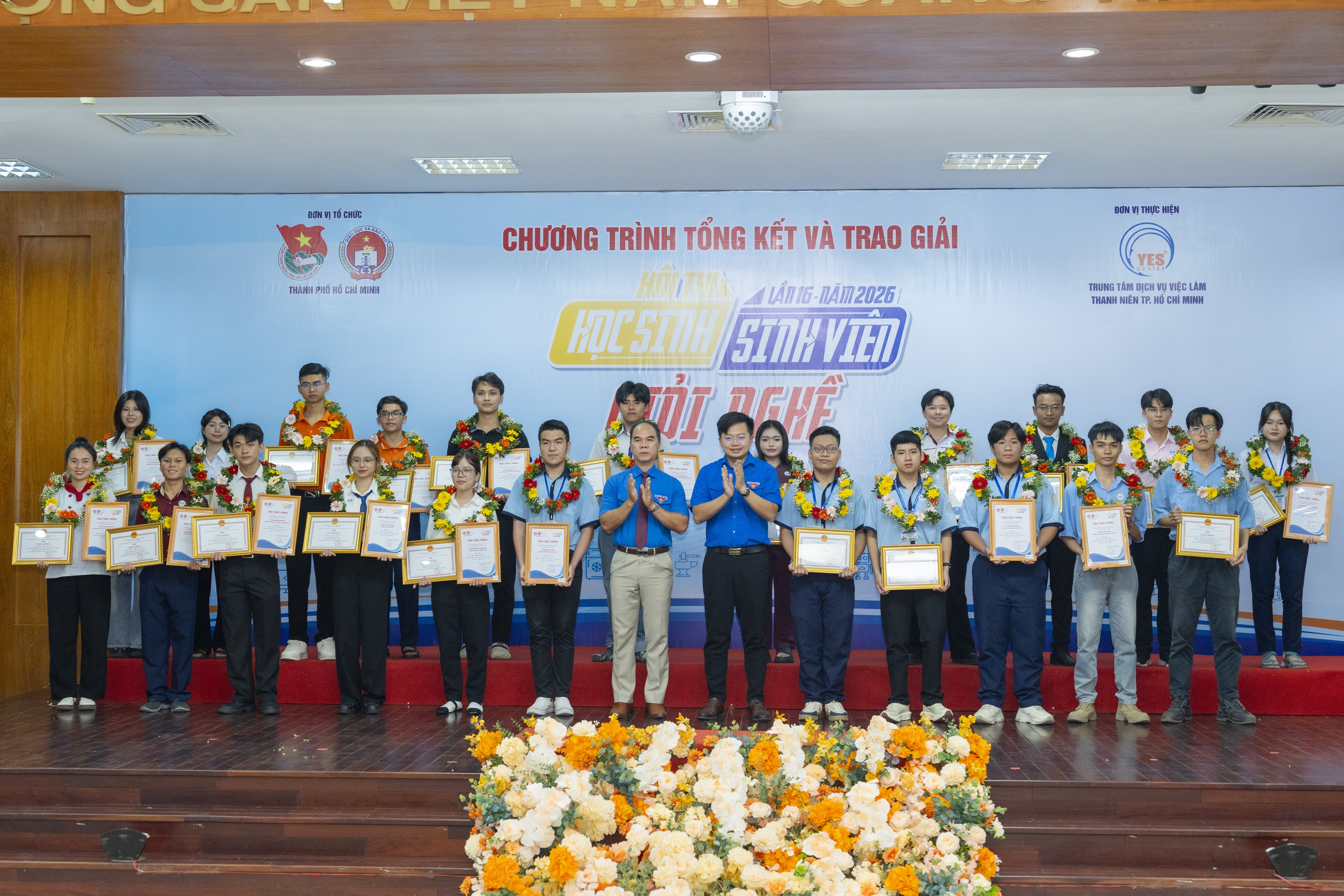 Chiều ngày 23/4/2026 tại Trung tâm dịch vụ việc làm Thanh niên Tp. HCM đã tổ chức chương trình tổng kết và trao giải Hội thi " Học sinh sinh viên giỏi nghề lần thứ 16 - năm 2026" nhằm ghi nhận những nỗ lực, thành tích nổi bật của các đội thi, các học sinh sinh viên của các trường Cao đẳng, trung cấp trong cuộc thi.