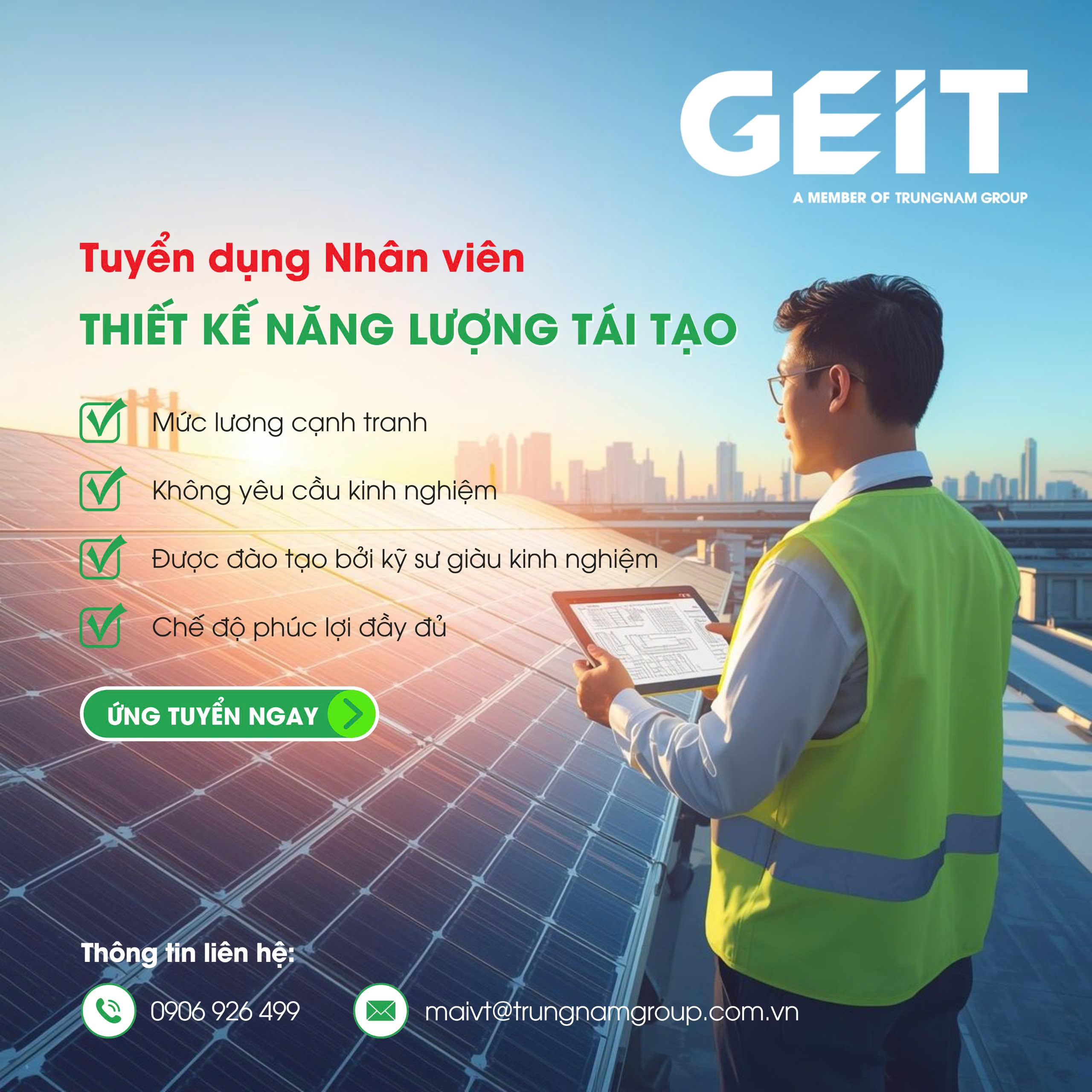 Công ty Thương mại Điện Xanh tuyển dụng nhân viên thiết kế năng lượng tái tạo