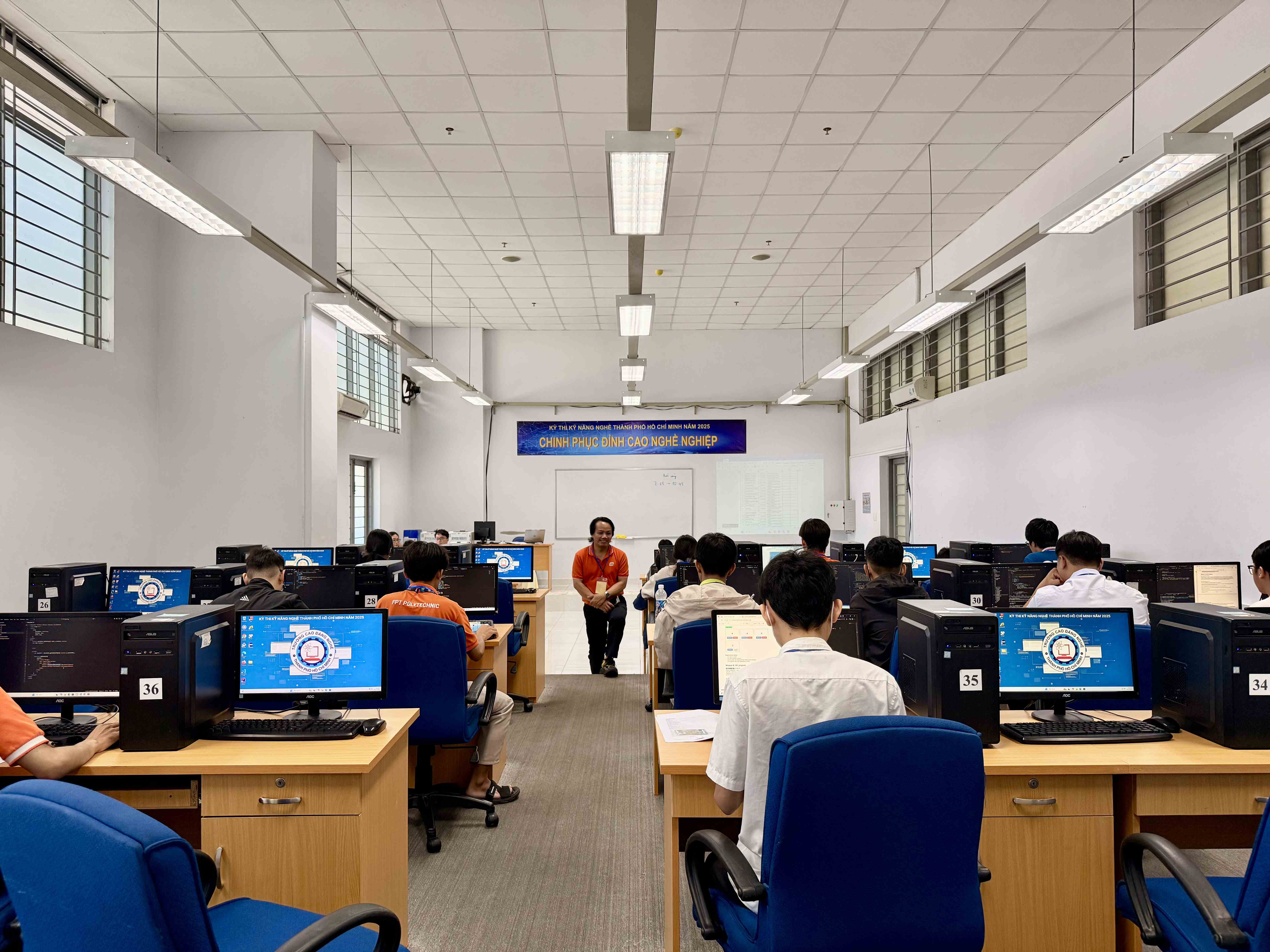Hình ảnh sinh viên Trường Cao đẳng nghề Thành phố Hồ Chí Minh tham gia kỳ thi Kỹ năng nghề Tp. HCM năm 2025