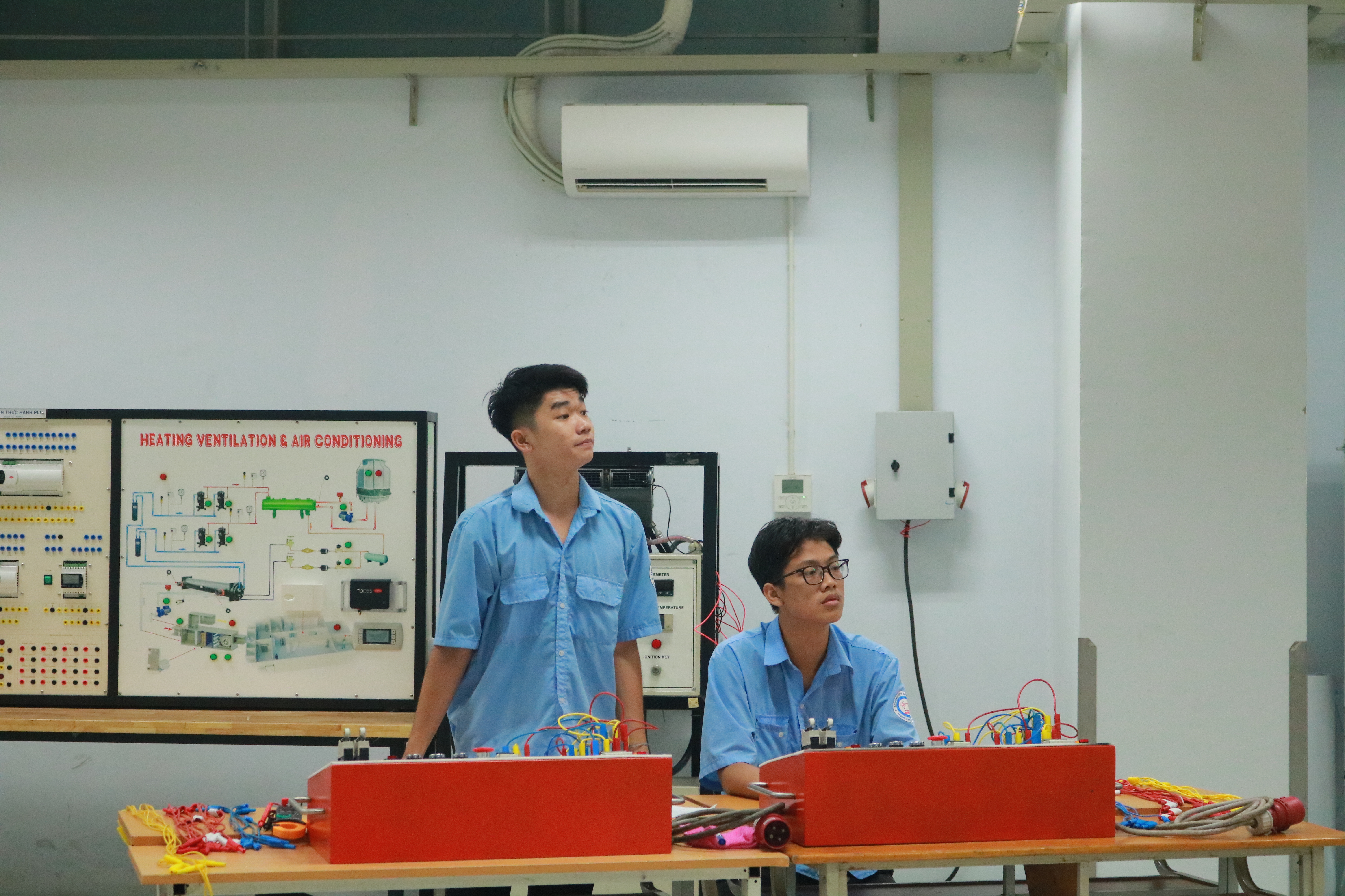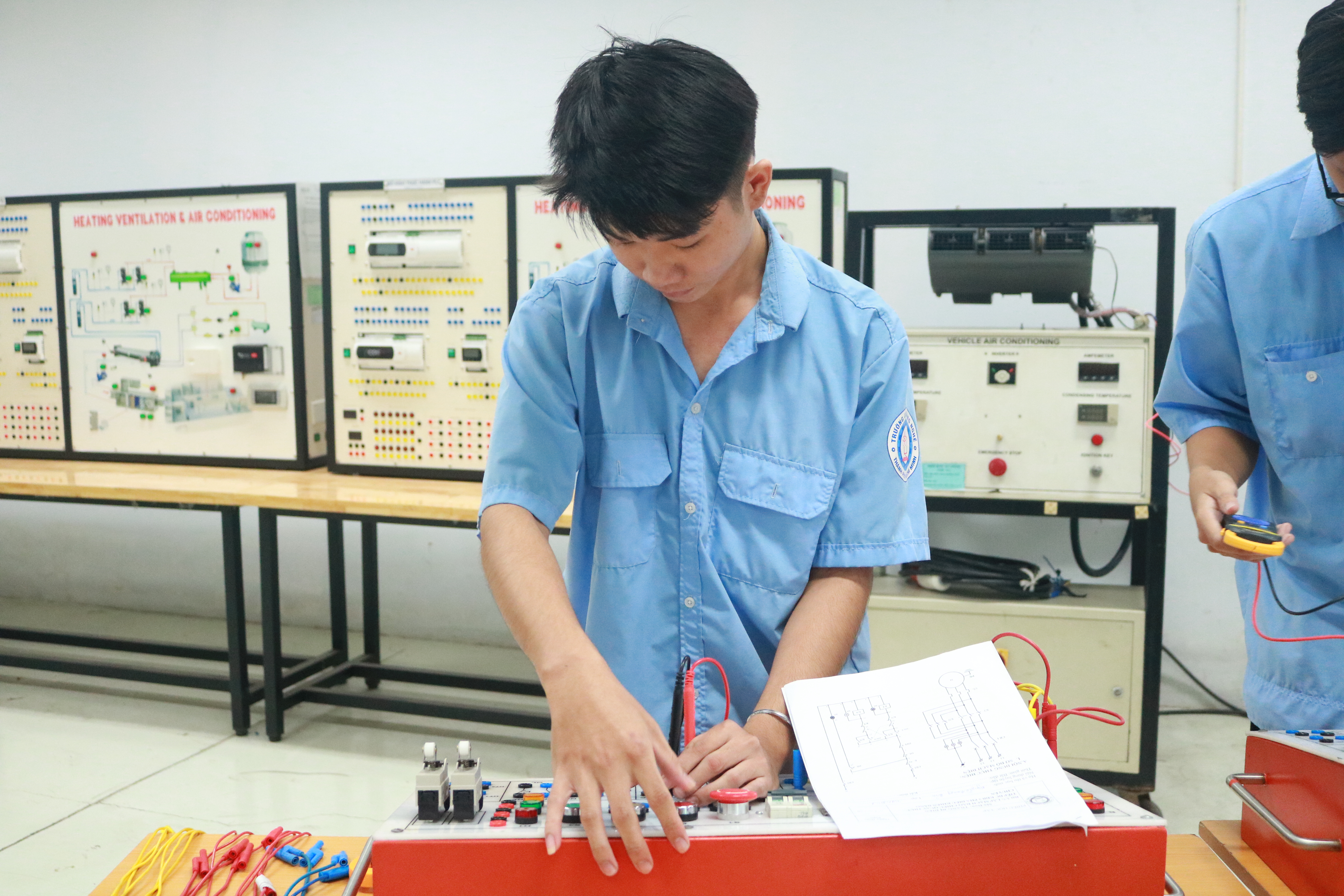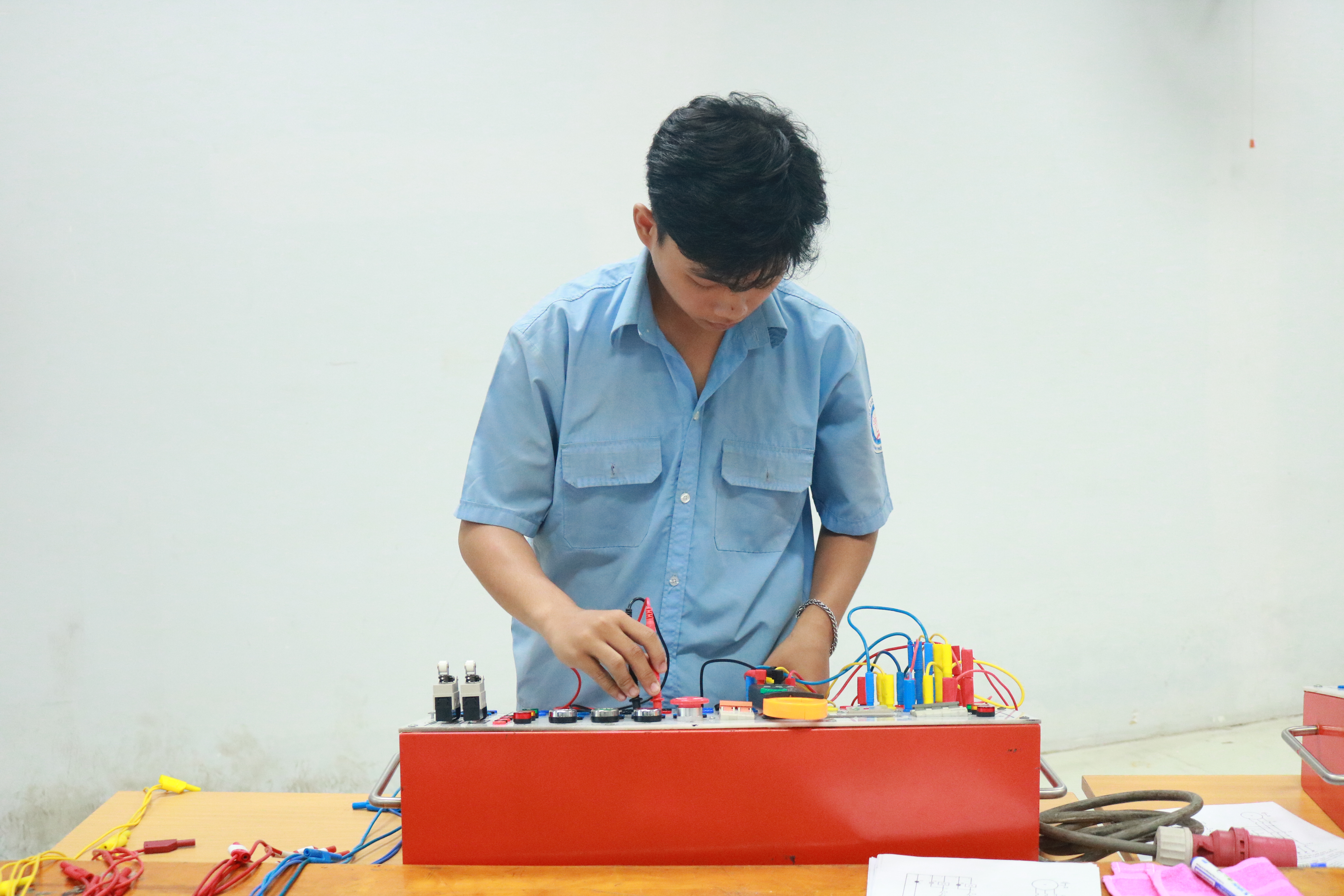 Sinh viên thực hành trên thiết bị và được hướng dẫn chi tiết, kiểm tra kết quả sau khi hoàn thành.