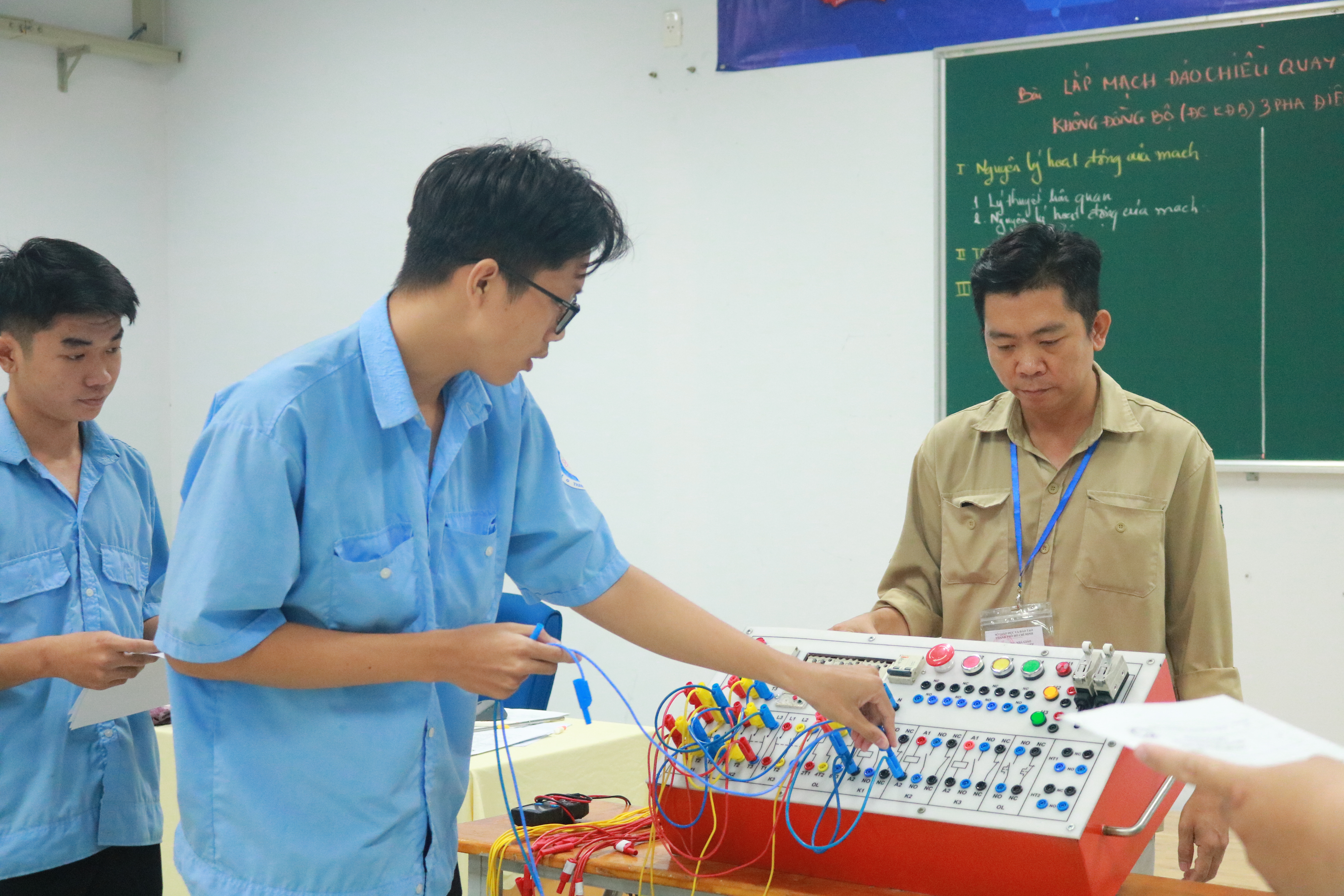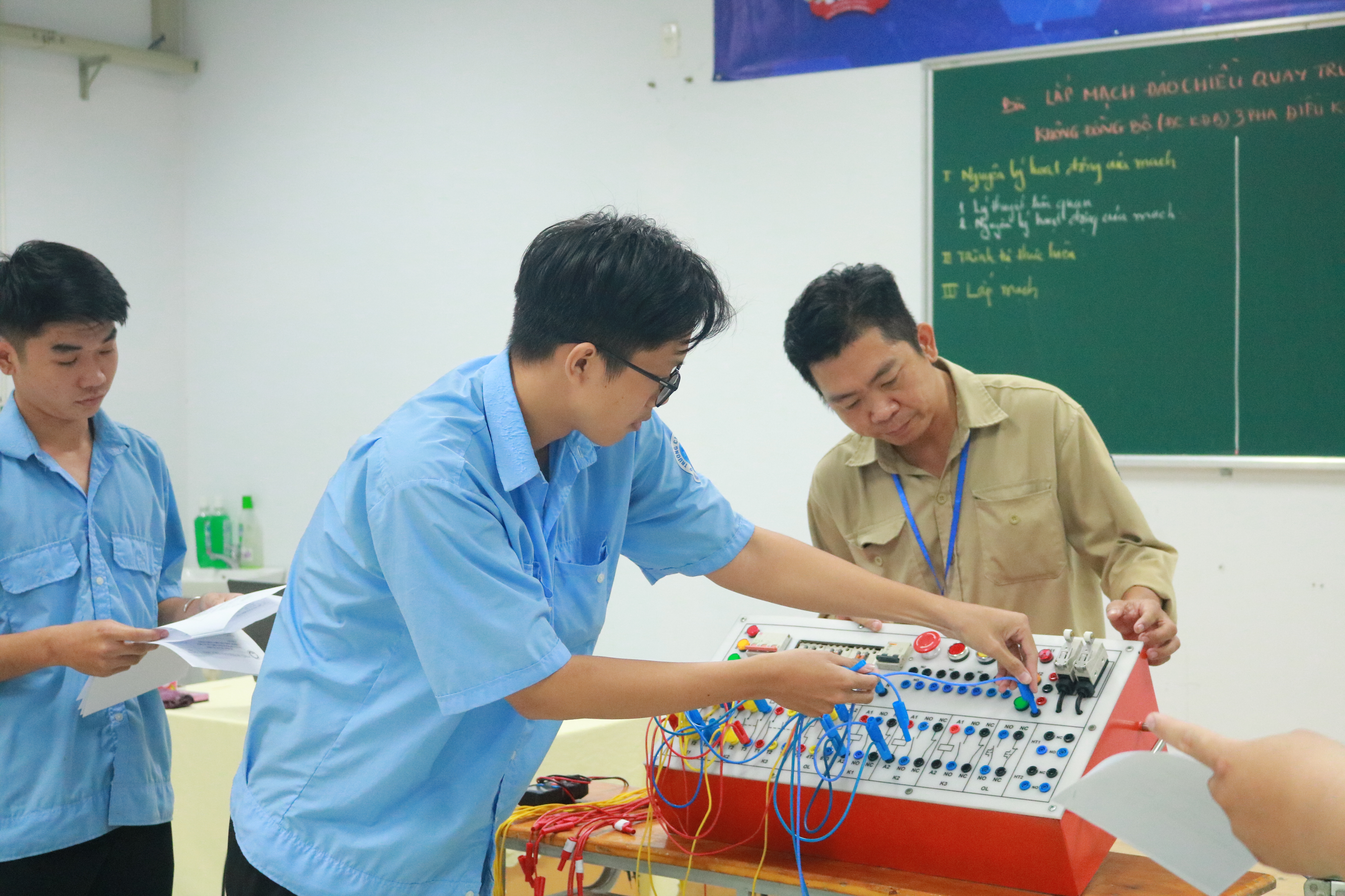 ThS. Nguyễn Minh Tuấn hướng dẫn sinh viên thực hành trên thiết bị dạy học tự làm