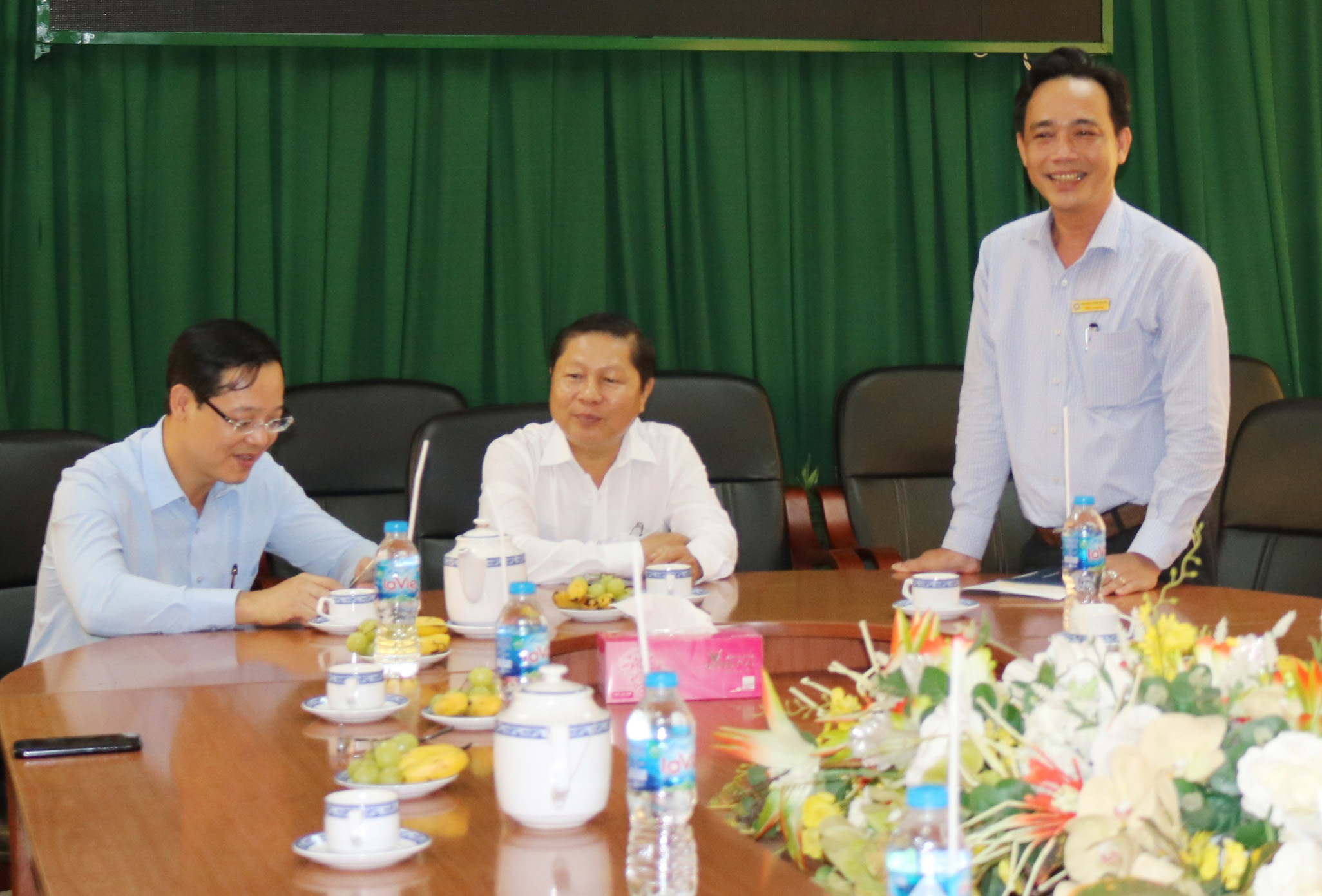 Đón tiếp đoàn công tác có sự hiện diện của ông Trần Kim Tuyền, Hiệu trưởng nhà trường; bà Hồng Thị Thanh Thủy, Phó Hiệu trưởng; ông Nguyễn Thọ Chân, Phó Hiệu trưởng cùng toàn thể quản lý các Phòng, Khoa, Trung tâm.