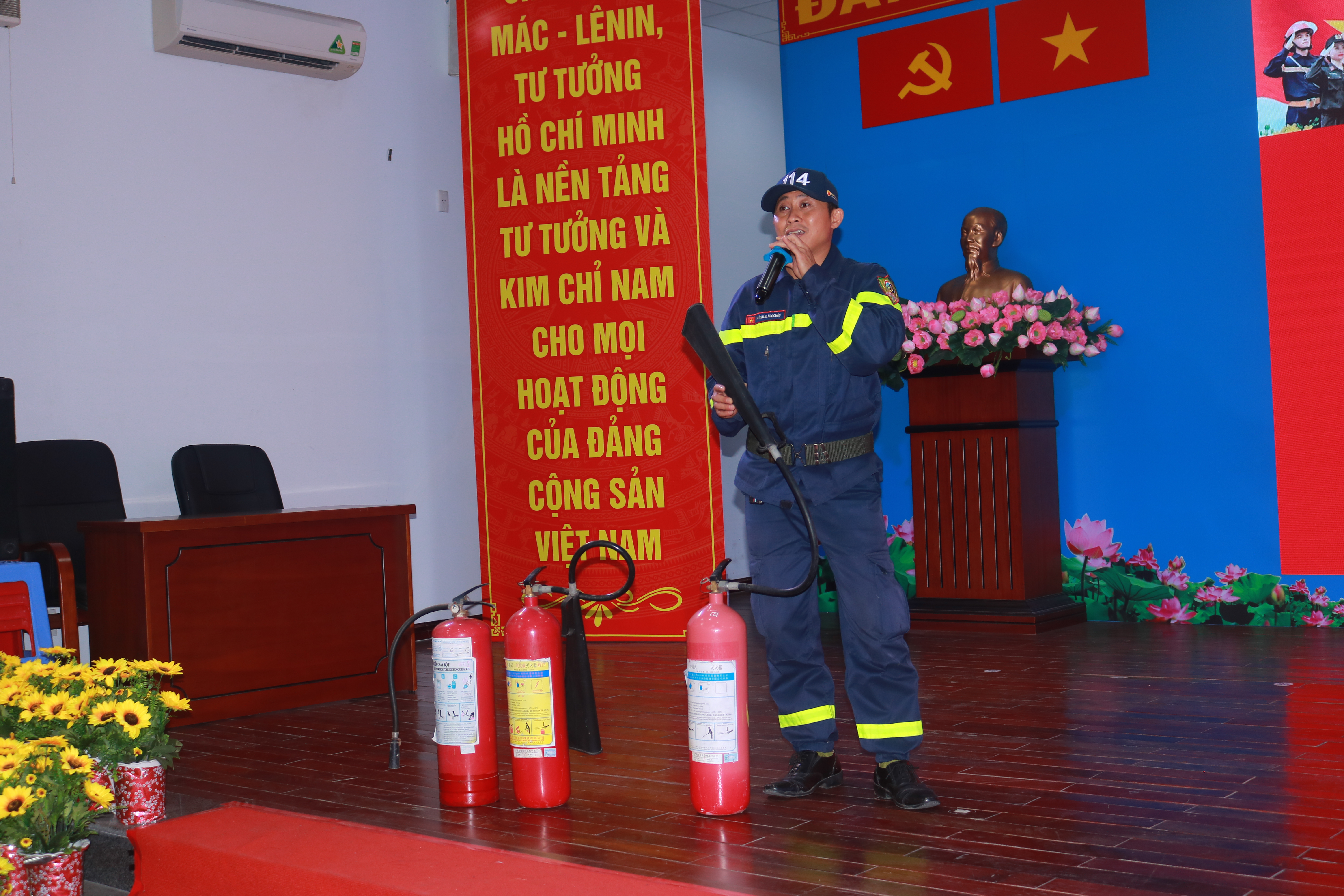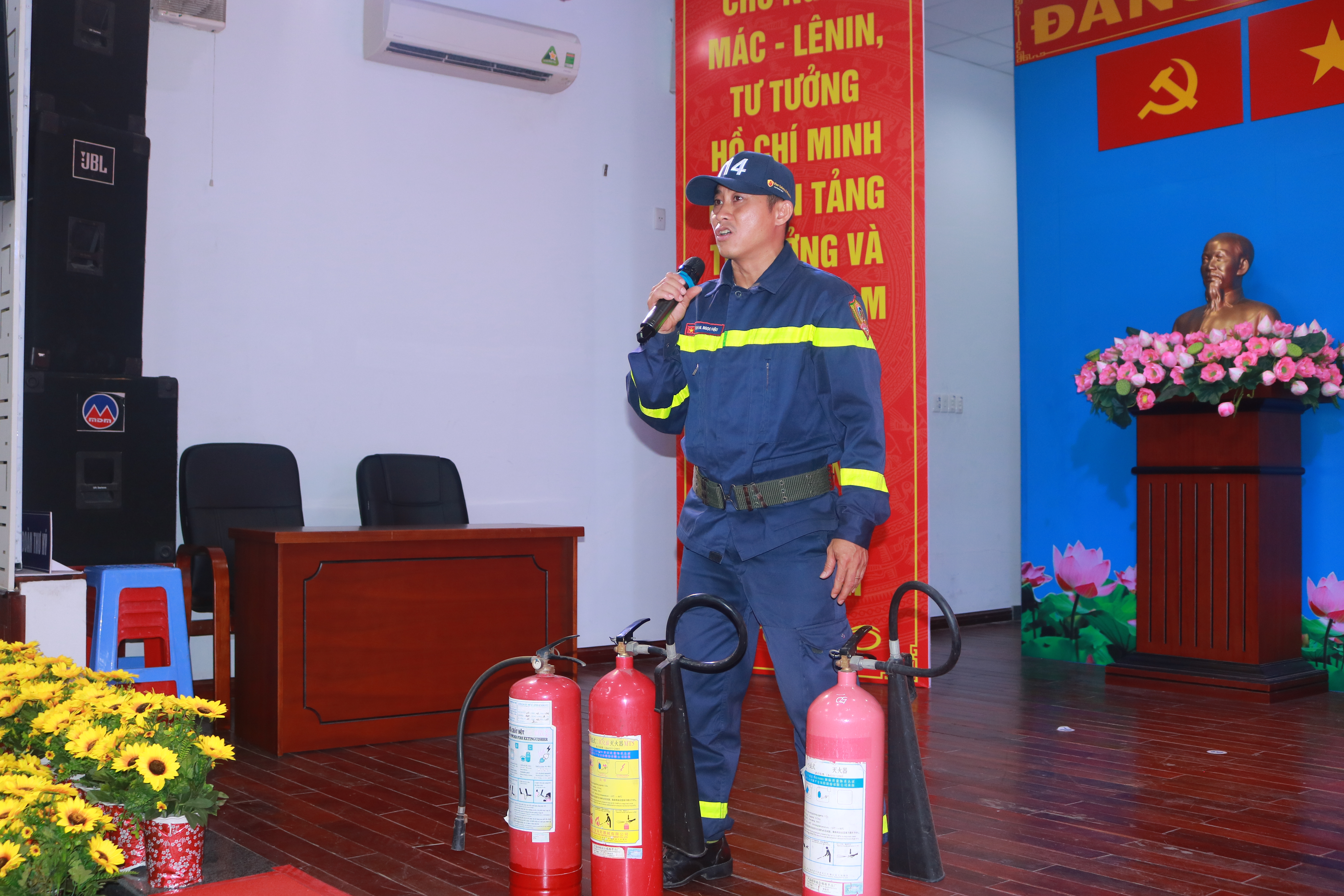 Báo cáo viên: đồng chí Huỳnh Nguyễn Ngọc Hậu – Cán bộ phòng cảnh sát phòng cháy chữa cháy cứu nạn cứu hộ công an Thành phố Hồ Chí Minh.