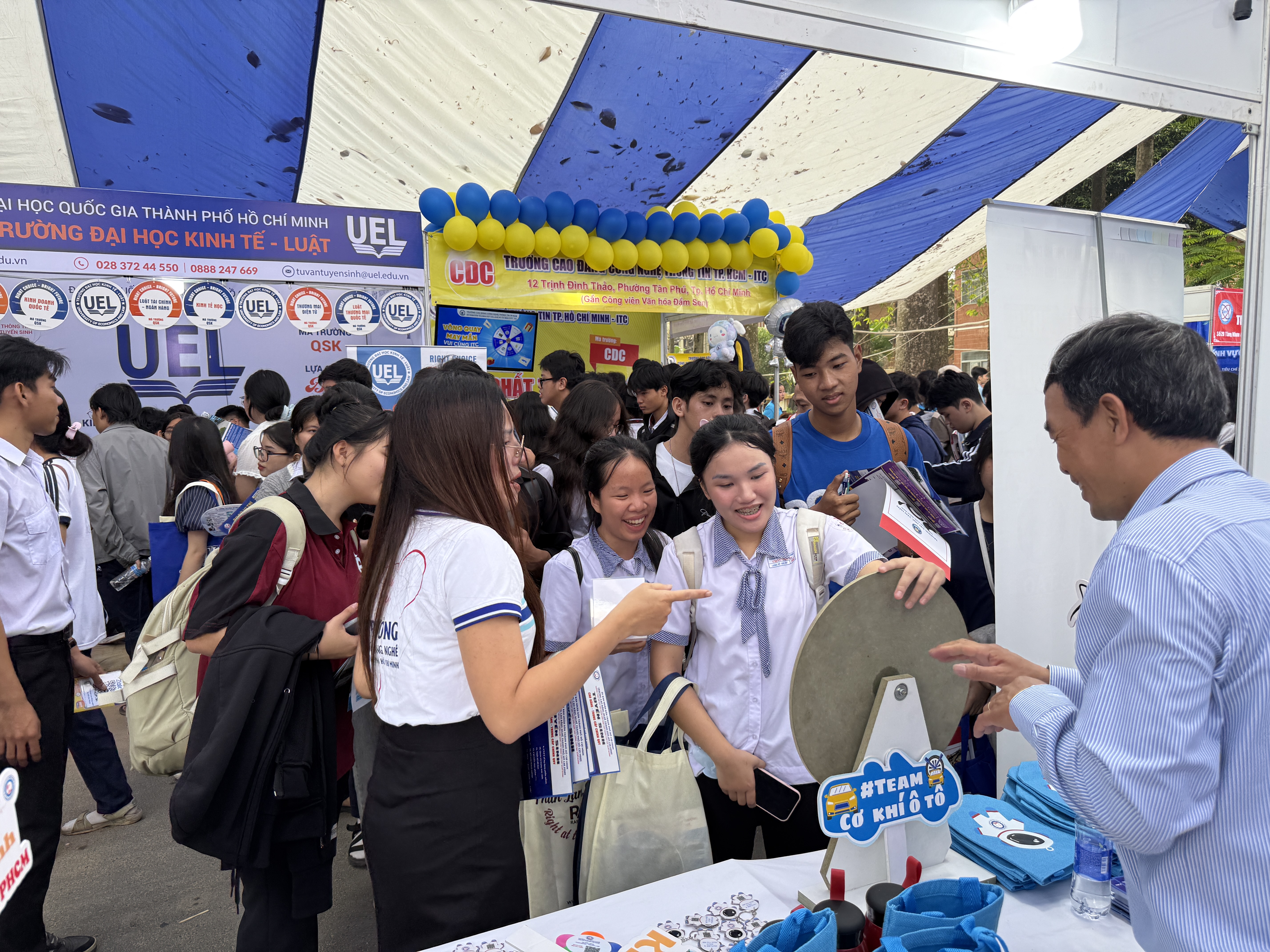 Đây là 1 ngày hội lớn thu hút hàng chục nghìn học sinh đến từ hơn 120 trường THPT tại TPHCM cùng nhiều địa phương như Vĩnh Long, Đồng Tháp, Đồng Nai, Lâm Đồng, Tây Ninh… Trong đó, các gian hàng trường Cao đẳng trở thành điểm dừng chân đông đảo của học sinh và phụ huynh.