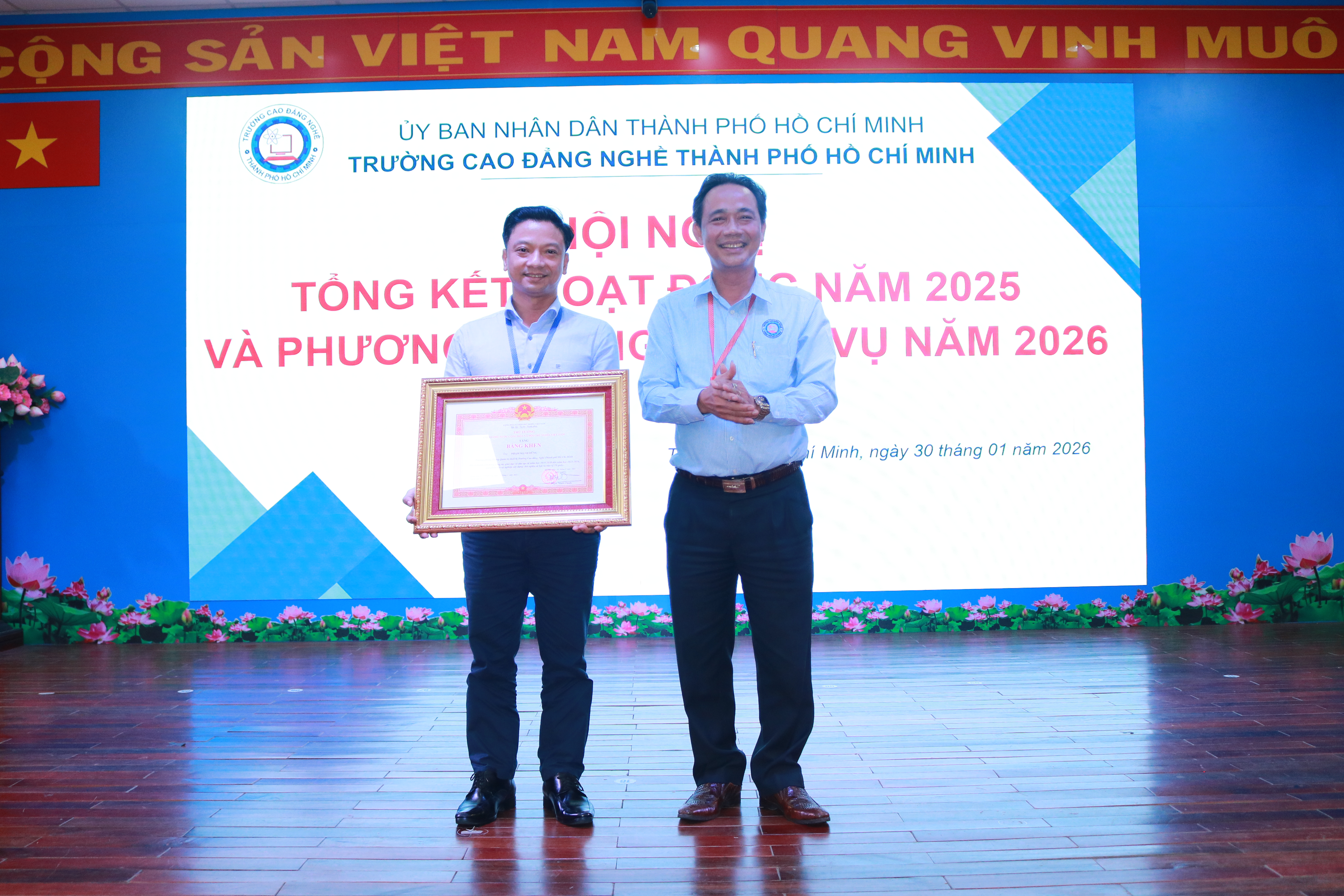 Chiều ngày 30/01/2026, Trường Cao đẳng nghề Thành phố Hồ Chí Minh tổ chức Hội nghị tổng kết hoạt động năm 2025 và phương hướng nhiệm vụ 2026.
