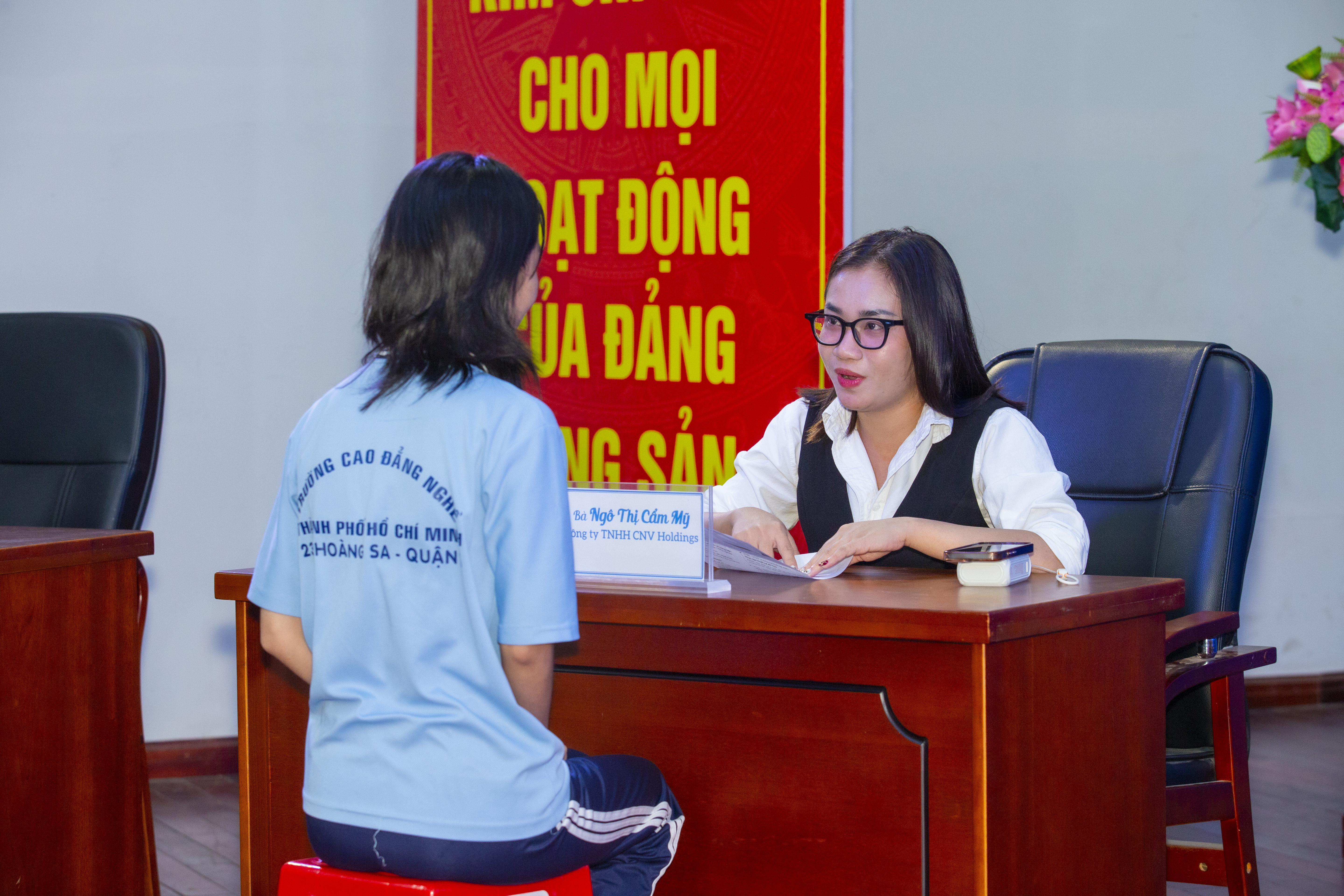 Đồng thời đây là dịp tạo không gian tương tác trực tiếp để các em tiếp cận thông tin tuyển dụng, tìm hiểu yêu cầu công việc và cơ hội nghề nghiệp tại các doanh nghiệp thông qua cơ hội tham gia phỏng vấn thử với doanh nghiệp, qua đó rèn luyện sự tự tin và có cái nhìn thực tế về quy trình tuyển dụng. Từ đó giúp các em sớm định hướng và lập kế hoạch nghề nghiệp dài hạn, đưa ra lựa chọn đúng đắn khi học tập và phát triển bản thân.